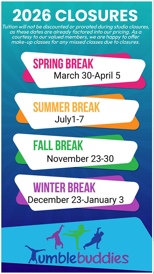 Tumblebuddies, the ultimate gymnastics experience for babies and young children. Our innovative program is designed to captivate and engage children while fostering their development and ensuring their safety. With a unique blend of Safety, Confidence Building, Parent/Child Bonding, Skill Advancement, and Fun, we guarantee an unforgettable experience for both parents and children.